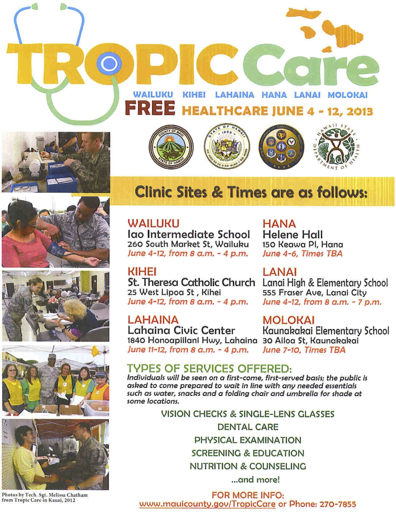Tropic Care Flyer-2 Published June 4, 2013 at 1275 × 1650 in Tropic Care Free Health Care Clinic Share this:Share Click to email a link to a friend (Opens in new window) Email Click to share on Facebook (Opens in new window) Facebook Click to share on Pinterest (Opens in new window) Pinterest Click to share on X (Opens in new window) X Click to share on Tumblr (Opens in new window) Tumblr Like Loading...