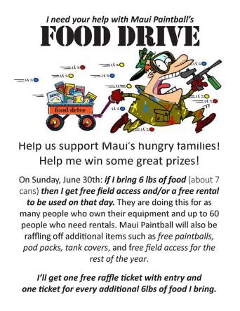 food drive. Published July 1, 2013 at 742 × 960 in Maui Paintball Food Drive Today! Share this:Share Click to email a link to a friend (Opens in new window) Email Click to share on Facebook (Opens in new window) Facebook Click to share on Pinterest (Opens in new window) Pinterest Click to share on X (Opens in new window) X Click to share on Tumblr (Opens in new window) Tumblr Like Loading...