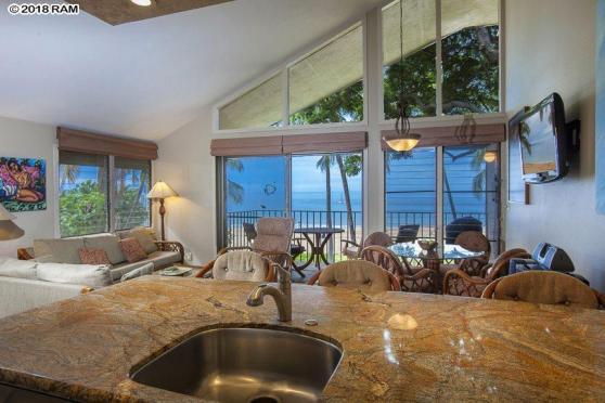 RARELY AVAILABLE, TRUE BEACHFRONT 2 bedroom, 2 bathroom remodeled condo with breathtaking OCEAN VIEWS on popular Charley Young Beach. If you are looking to enjoy the tranquility of the lapping waves without the hustle and bustle of a large complex or resort hotel – look no further. Kamaole One is a boutique, vacation rentable complex with only 12 units and covered parking. This second floor,corner unit has no units above it and is mere steps to having your toes in the sand and enjoying a great day at the beach in Maui! Pride of ownership is evident throughout this lovingly maintained, beautifully remodeled and highly sought after unit. Available to show on short notice when not occupied by the many repeat guests who enjoy this fantastic condo with phenomenal ocean views. Kamaole One unit 12 is offered fully furnished – all you have to do is bring your toothbrush!