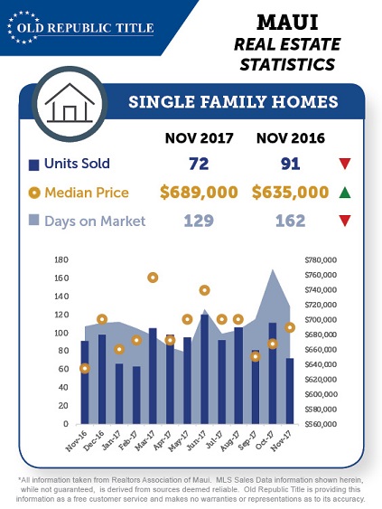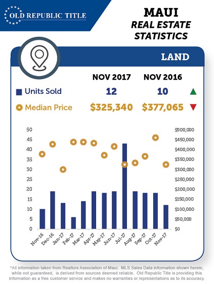 Thank you to our friends at Old Republic Title for providing these cool graphic breakdowns for Maui Real Estate for the past year. Provided are the statistics for single family homes, condominiums, and land sales. Big jump in the median pricing for condominiums, a slight increase for median home prices, and slight decrease for land pricing. You can use these graphics as a guide for following the Maui market trends.